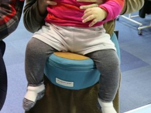 初めて見た時はウエストポーチに子どもを乗せているのかと思いましたが、子どもを乗せる専用の土台のような物だそうで、試しにお借りして我が子を乗せてみると想像以上に楽でした。