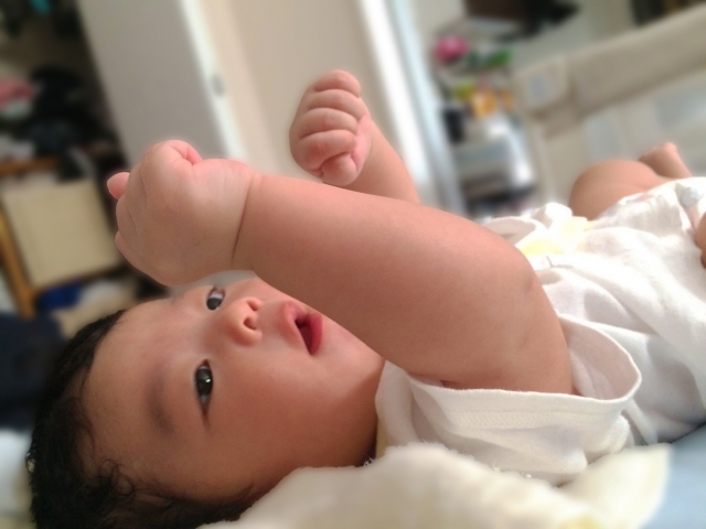 寝ているときにやるといいといことですが、私は3カ月くらいから目を覚ましているときにやっています。