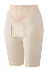 全体的にレースの飾りが施されたかわいい産後ガードルです。締めるところは締めて、部分的に伸縮性があり、サイドファスナーが使い易いところなどが評判の産後ガードルです。