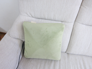 最近テレビでも話題の、おしゃれなマッサージクッションです。見た目は普通のクッションですが、カバーをめくると、モミ玉がついています。