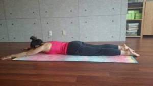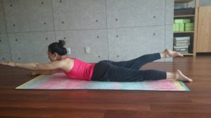 まるでスイミングをするようにして、背骨を伸ばしながら強化します。