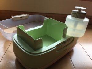 どうしておすすめかというと、例えばこの横のケースの部分に薬や綿棒等が入るし、ドライティッシュでもすぐにウエットティッシュになるということ、そしてお尻を拭くときに暖かい状態で拭けるということです。
