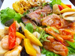まずは、お野菜から、そしてスープなどの汁物、最後に炭水化物などの主食。