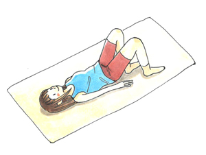 - 仰向けに寝て、足を肩幅に開きます。両膝を立てて、リラックスします。