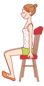 - 背筋を伸ばして椅子に浅く座ります。
