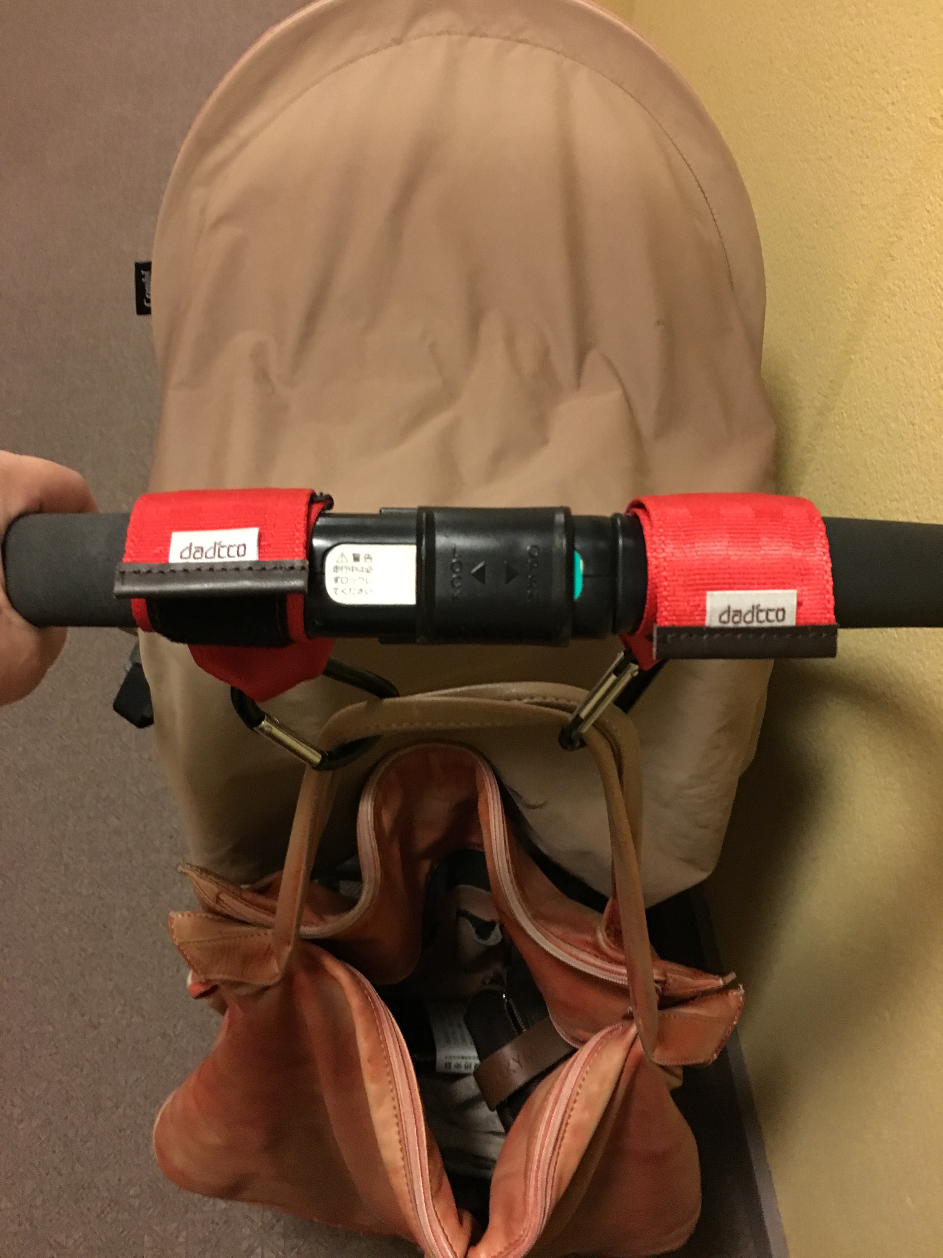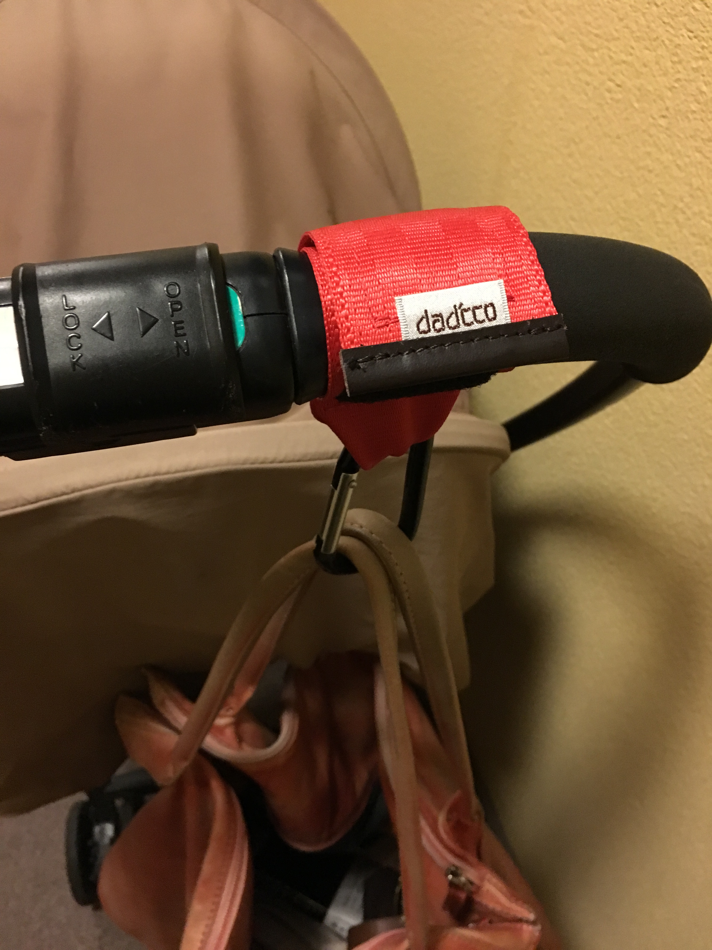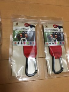 ベビーカーの持つ取っての部分につけるフックって意外に弱いプラスチックのものが多いと思います。もっと強度があるものがないかなあと思っていたところ、最強とも言えるくらいのフックを見つけました!