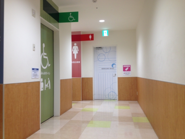 まずベビーカーで来ている場合は、車椅子マークのトイレにベビーカーごと入って、落ち着いて用を足せるでしょう。