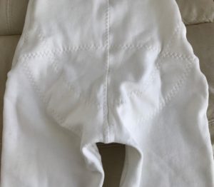 他の産後ガードルの感覚と比べて、こんなに伸びていいの?と思うぐらい抵抗なく履けるんですが、履いた後にホックを留めていくとギュッとしてピタッと補正されている感。
