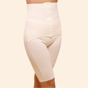 ガードルの構造は5分丈パンツの腰回りから上にホックのついた羽のような腰回りの補強用布を縫い合わせてあるつくり