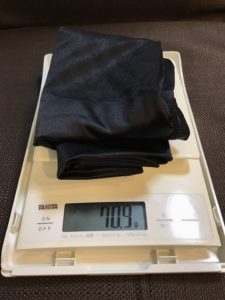 薄さつながりで何グラムあるんだろう?と調理用の秤で計測してみたところ、結果は70.9g ‥ 誤差もあると思うので約71gですね。