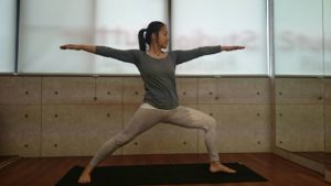 目線は中指の先を見るようにしましょう。これを3~5呼吸キープします。